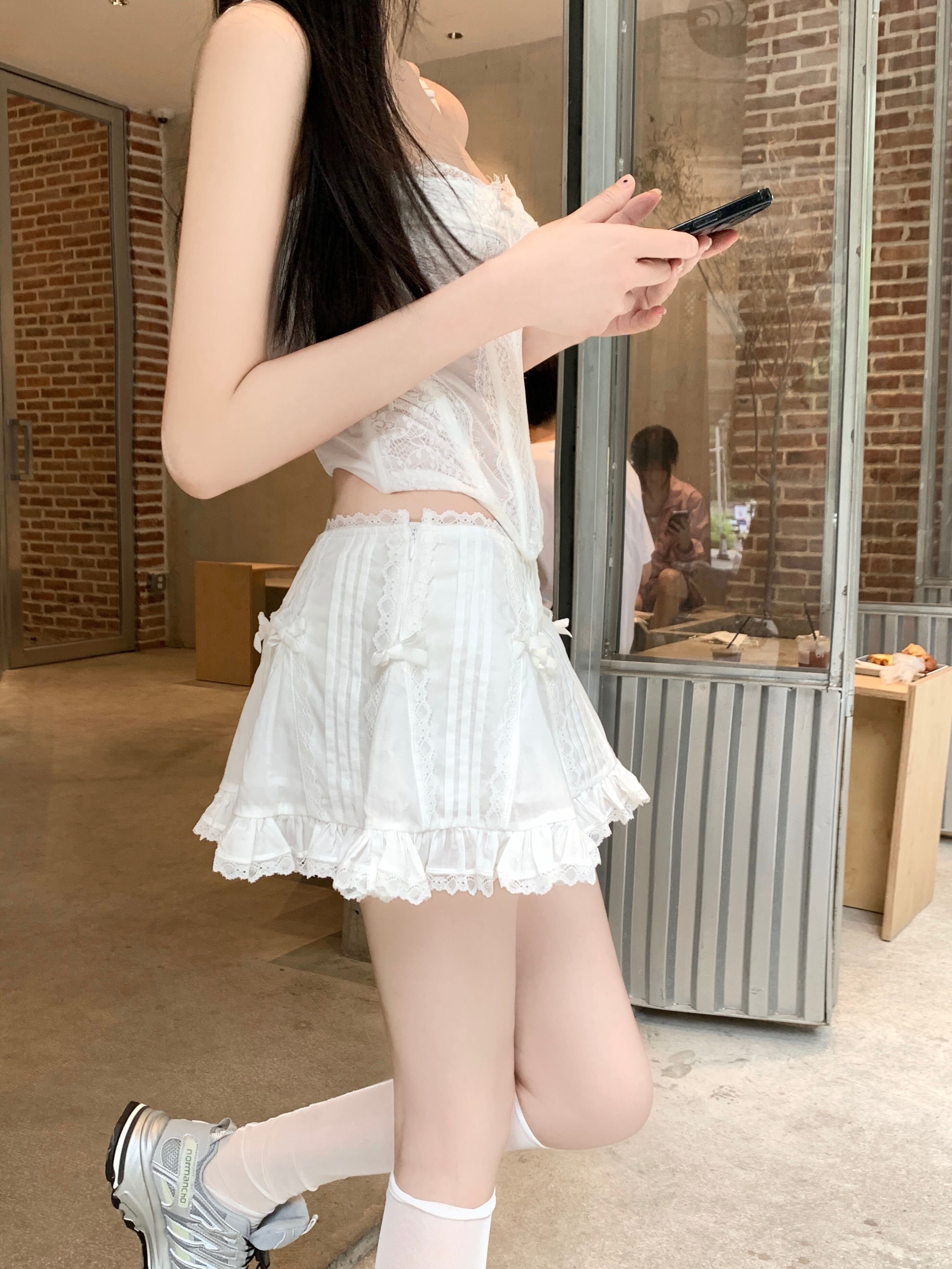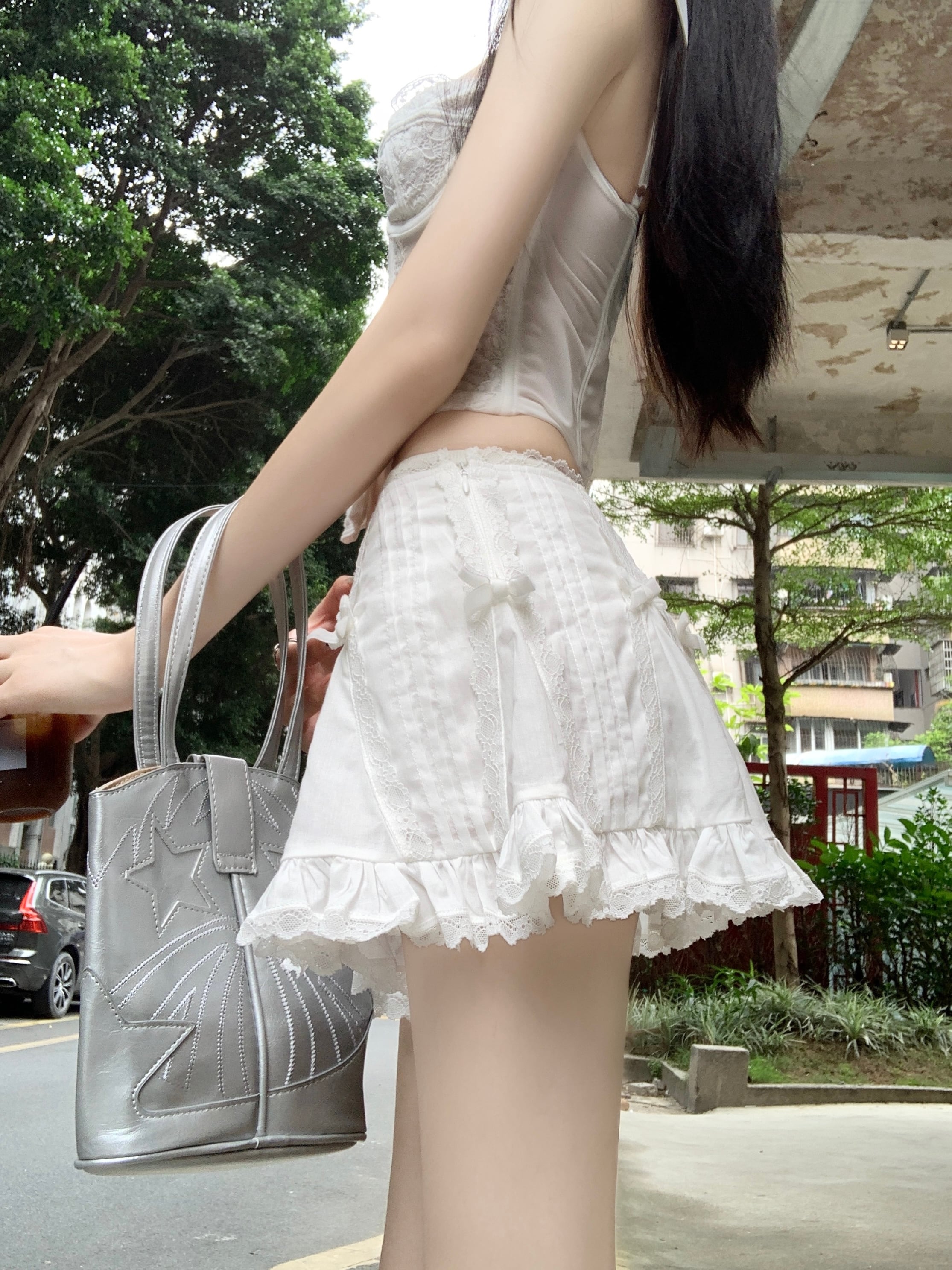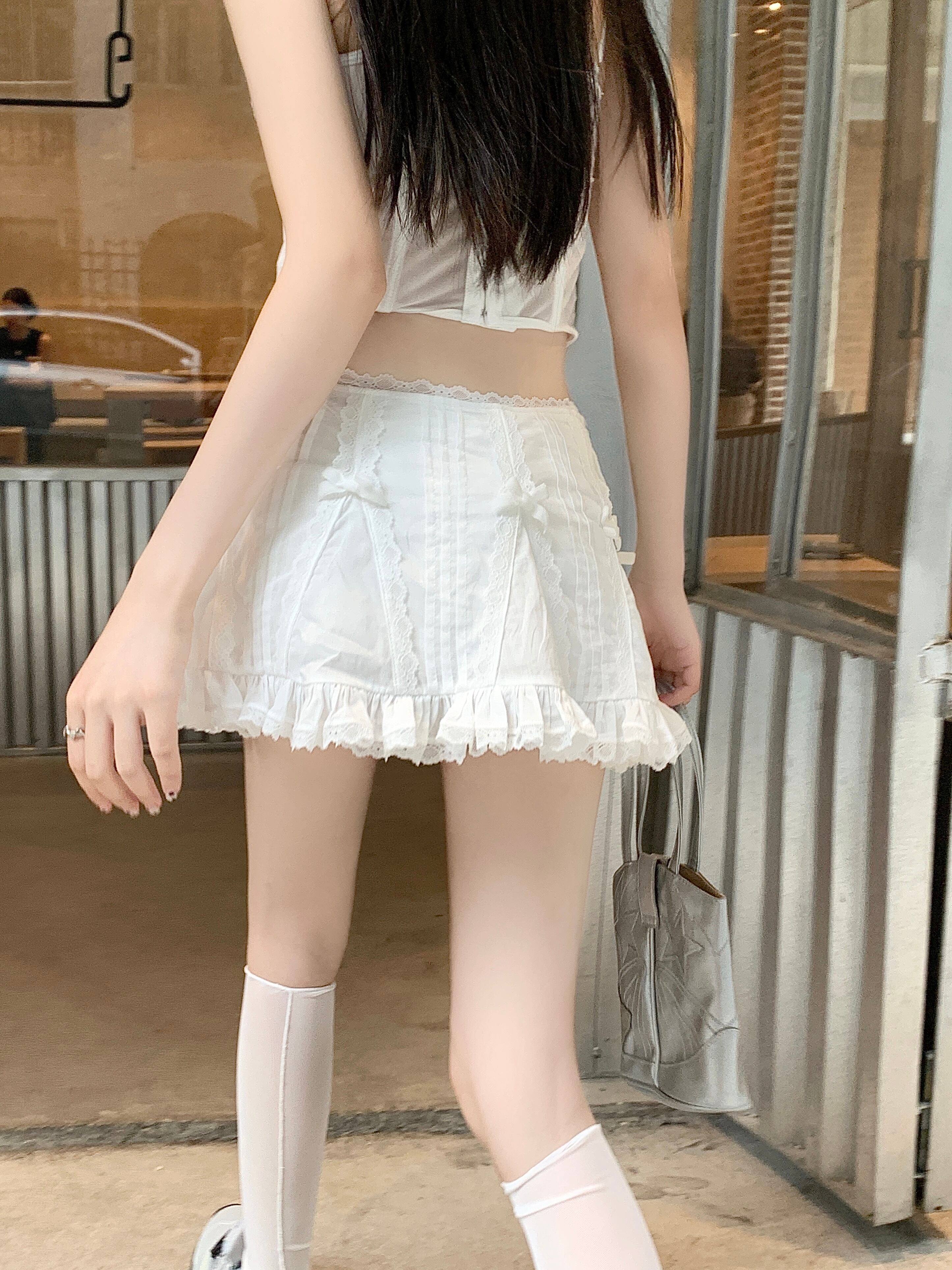 送料無料 HOUZHOU ホワイトスカート女性夏ローウエストレースリボンパッチワーク A ラインミニスカートスタイルコケットガール美的 サマー 夏物 Aライン AE1212777661051709844