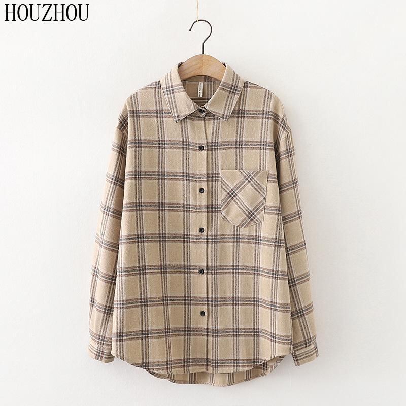 送料無料 HOUZHOU レディースチェック柄シャツスタイルオーバーサイズ長袖ボタンチェックシャツグランジターンダウンカラーヴィンテージブラウス ロング ビンテージ AE12127776642604940534