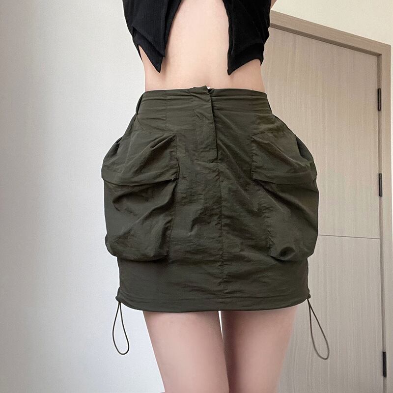 送料無料 HOUZHOU カーゴスカート女性 Techwear グランジ Y2k ウエストビッグポケット巾着裾スリムミニスカートストリート夏 サマー 夏物 AE12127776610643543516
