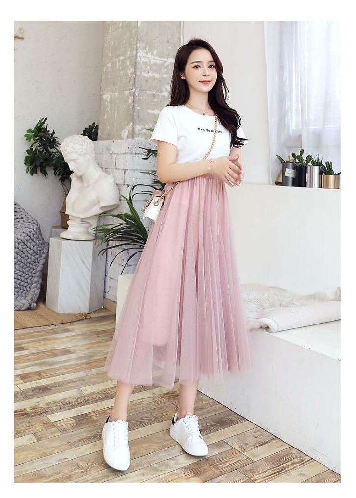 送料無料 HOUZHOU ロングフレアチュールスカートの女性 2023 春夏スタイルウエスト A ラインメッシュスカートチュチュペチコート Longue スプリング 春物 サマー 夏物 Aライン パニエ AE12127776623545433631