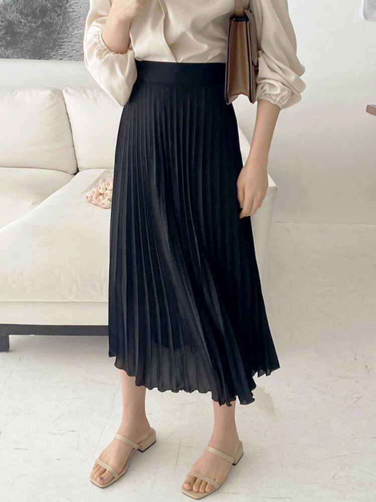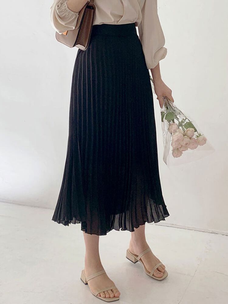 送料無料 HOUZHOU スタイルプリーツロングスカート女性の夏 2023 シックなシフォンウエストソリッドフレアスカート A ライン東大門 サマー 夏物 Aライン ソリッドカラー AE12127776691565024169