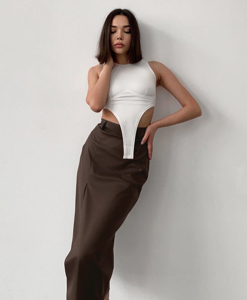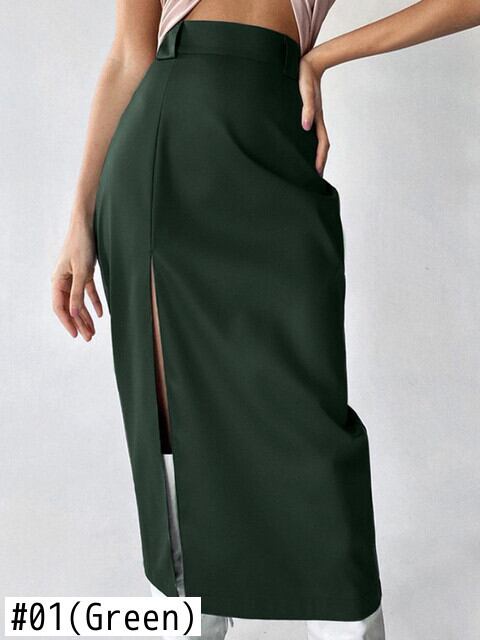 送料無料 HOUZHOU レザースリットロングスカート女性秋のセクシーなスリムウエストオフィスレディペンシルスカートミディストリート オータム 秋物 会社 学校 通勤や通学にも AE12127776612946426523