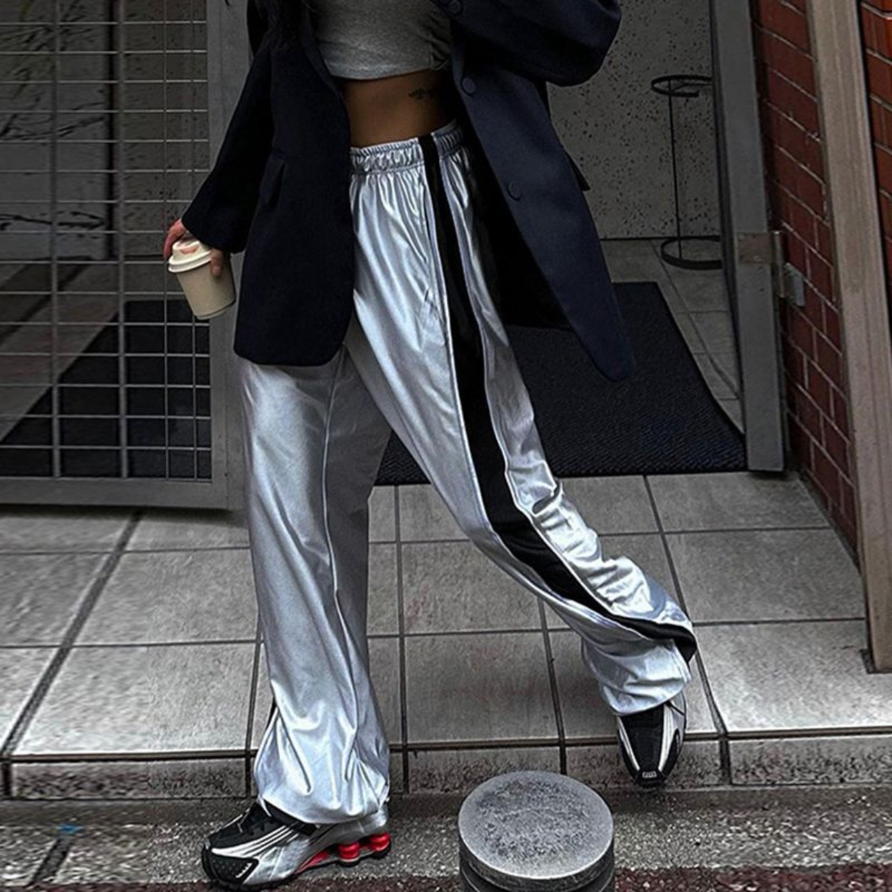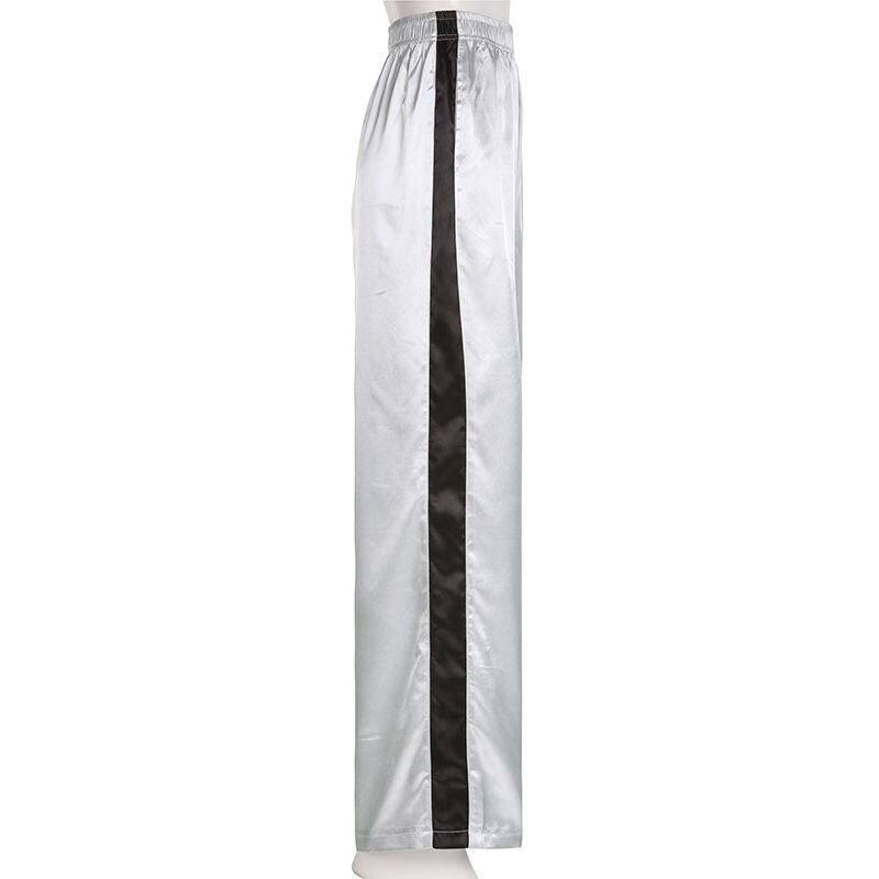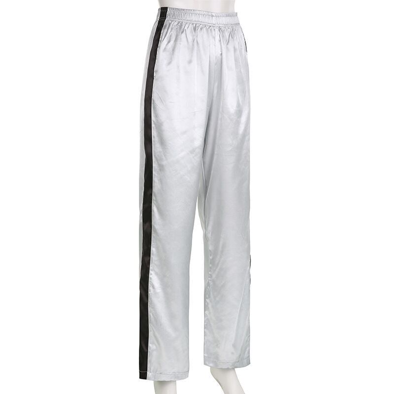 送料無料 HOUZHOU Y2k シルバースウェットパンツ女性ストリートルーズヴィンテージサイドストライプ弾性ウエストトラックパンツ夏のズボン エラスティック 伸縮 サマー 夏物 銀 ビンテージ AE12127776645509273250