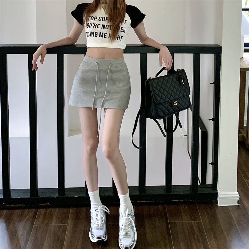 送料無料 HOUZHOU ミニスカートの女性の夏の巾着スポーツウエストベーシックソリッドスリム A ラインショートスカート Y2k スコート サマー 夏物 Aライン ソリッドカラー AE12127776665625898878