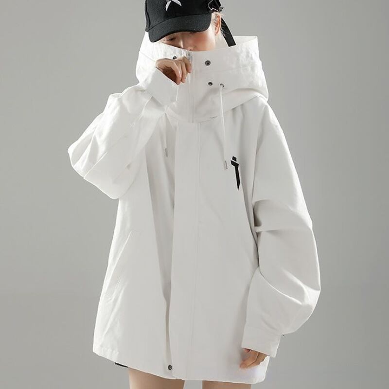 送料無料 HOUZHOU ストリートフード付きトレンチコート女性秋固体 ese ヴィンテージオーバーサイズジャケット Techwear 原宿 かわいい オータム 秋物 ソリッドカラー ビンテージ AE12127776631329821766