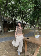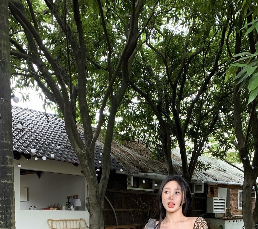 送料無料 HOUZHOU Kpop ヒョウ柄 Tシャツ女性 Y2k 原宿スリムクロップトップヴィンテージセクシーなスクエアカラー半袖 Tシャツ夏 ショート ハーフスリーブ かわいい サマー 夏物 スクウェア ビンテージ AE12127776672547960634