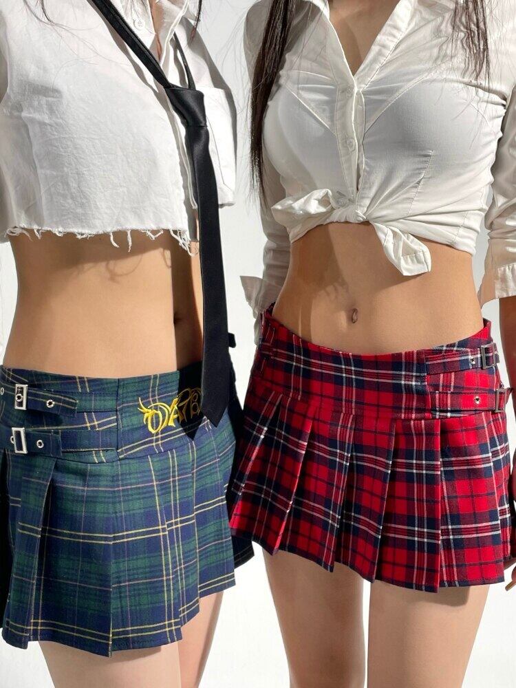 送料無料 HOUZHOU チェック柄ミニスカートの女性の夏のローウエスト 2000 年代 Y2k 刺繍 A ラインプリーツマイクロスカートギャルガールセクシーなプレッピースタイル レッド サマー 夏物 Aライン AE12127776694780487422
