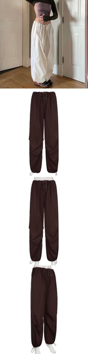 送料無料 HOUZHOU 巾着だぶだぶカーゴパンツ女性 Y2k ストリートヴィンテージオーバーサイズ白ローライズワイドパンツと多くのポケット ホワイト ビンテージ AE12127776683535036345