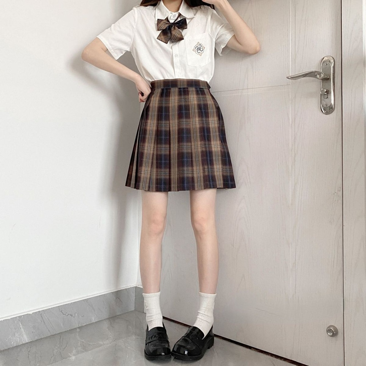 送料無料 HOUZHOU プレッピーチェック柄スカートプリーツ女性 ese 学校ブラウンウエスト A ラインショートスカートガールズ JK Aライン AE1212777665898516598 | 女性の為の通販サイト-fashion navi