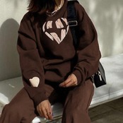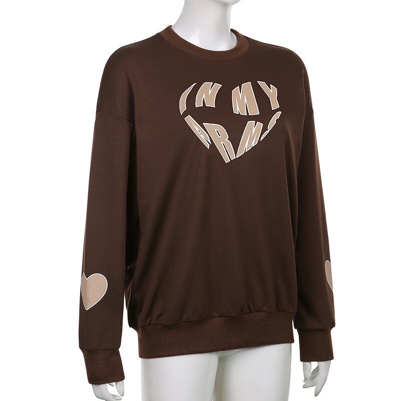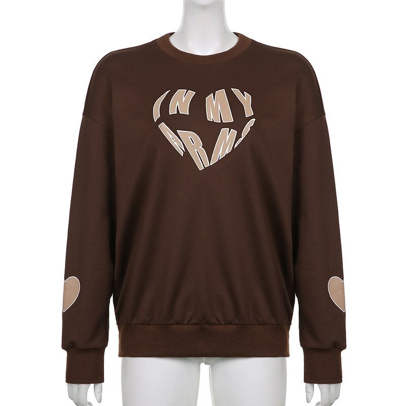 送料無料 HOUZHOU グラフィックパーカー女性秋ヴィンテージ Y2k ハートレタープリントプルオーバー O ネックルーズスウェット長袖トップ ロング シャツ オータム 秋物 Oネック ビンテージ AE12127776625530644029