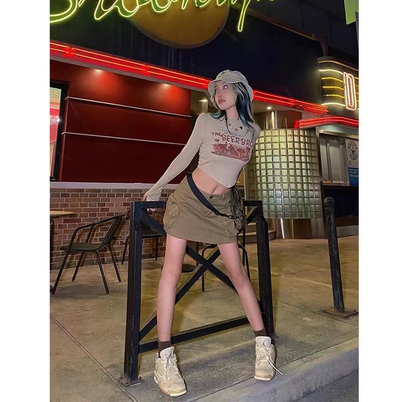 送料無料 HOUZHOU ヴィンテージカーゴスカート女性 Y2k レトロポケットパッチワークローウエスト A ラインデニムミニスカートヒップホップストリート Aライン ビンテージ AE12127776690830789813