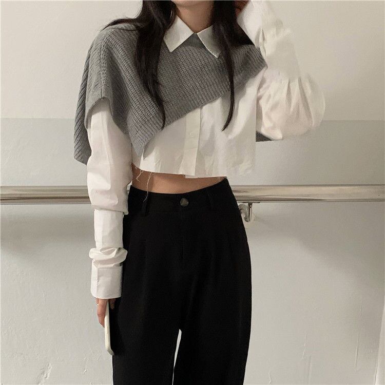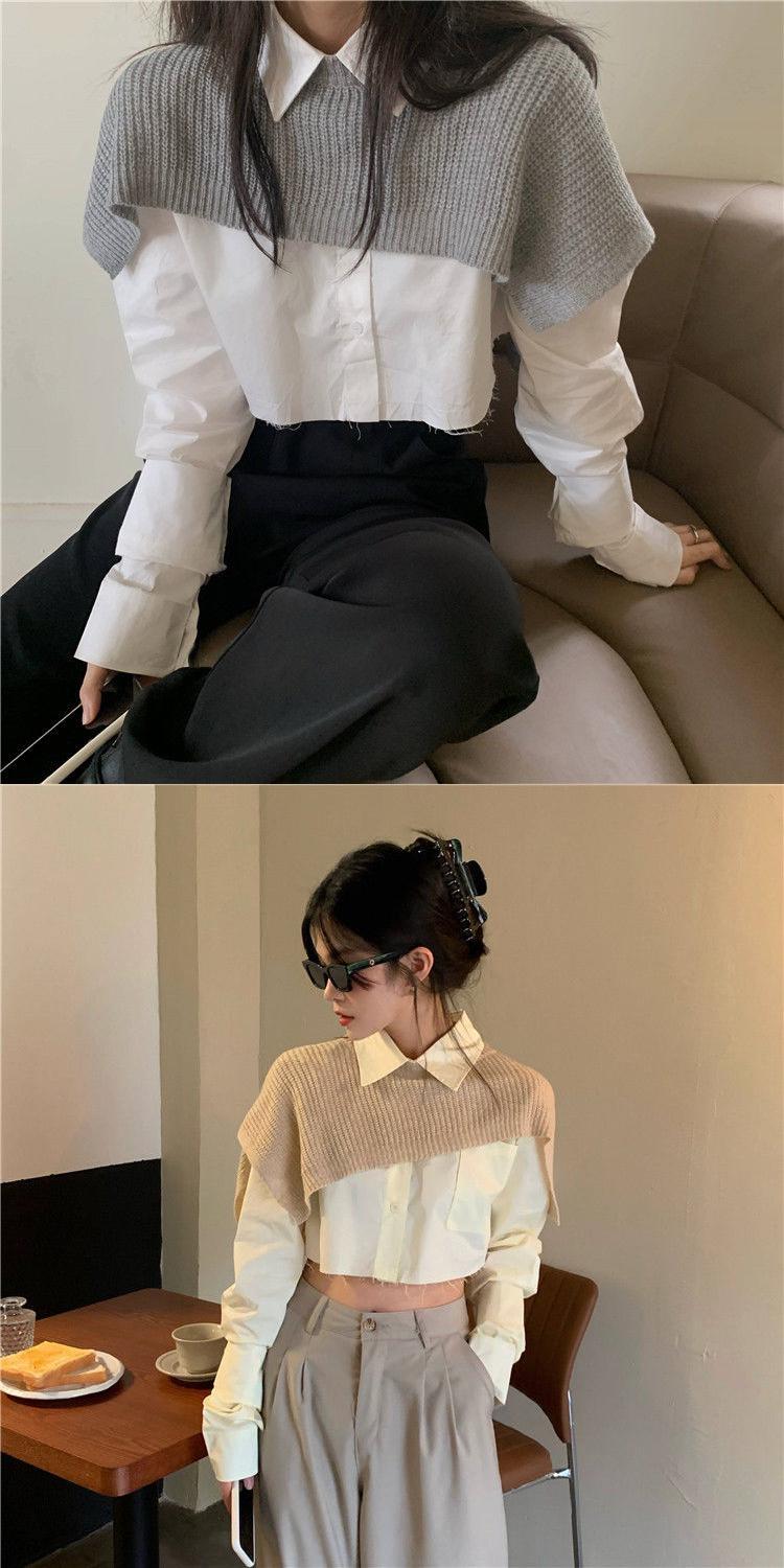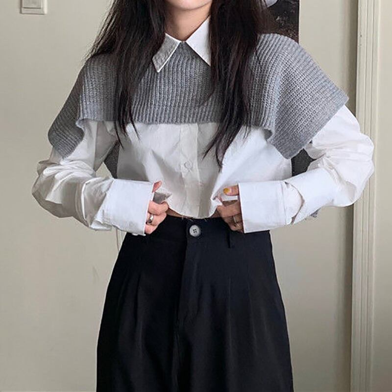 送料無料 HOUZHOU ショールクロップドシャツ女性 2022 秋ソリッド長袖トップシックなツーピースシャツ ロング オータム 秋物 ソリッドカラー AE12127776682428935216