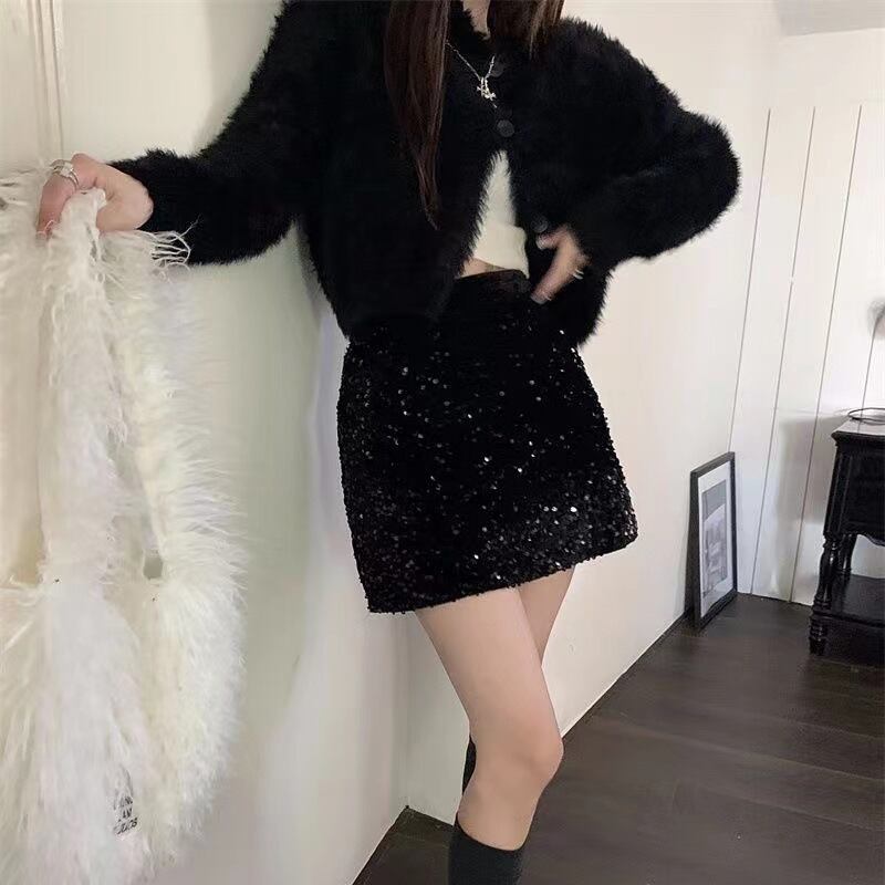 送料無料 HOUZHOU セクシーなスパンコールミニスカート女性スタイル 2023 春ウエスト A ラインショートスカートパーティーナイトクラブ スプリング 春物 Aライン AE12127776655582977225
