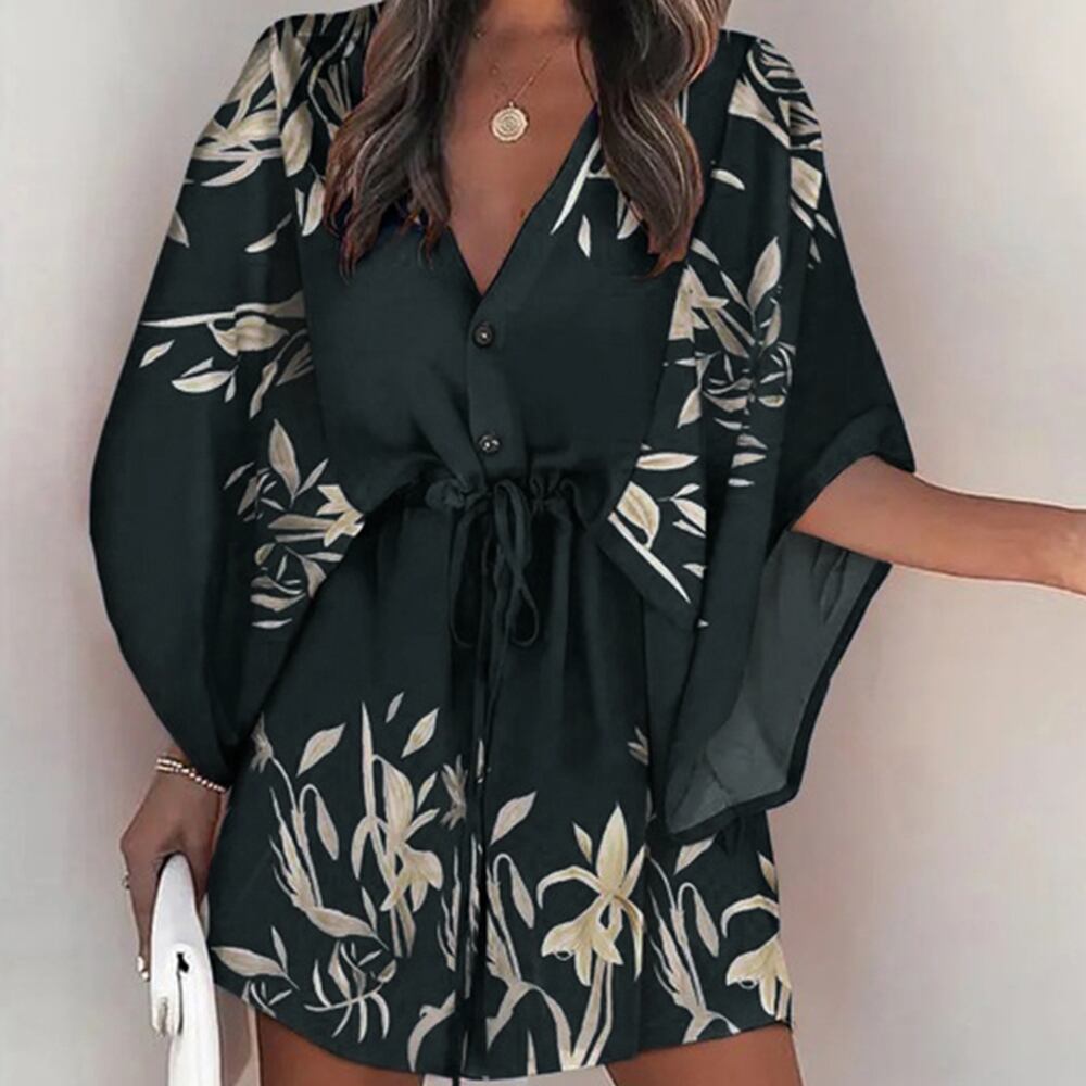 送料無料 CUPSHE V ネックフレアスリーブビキニカバーアップ女性ネイビールースレースアップホリデービーチチュニック 2023 夏ミニドレスビーチウェア レッド サマー 夏物 Vネック AE1212665565460640660
