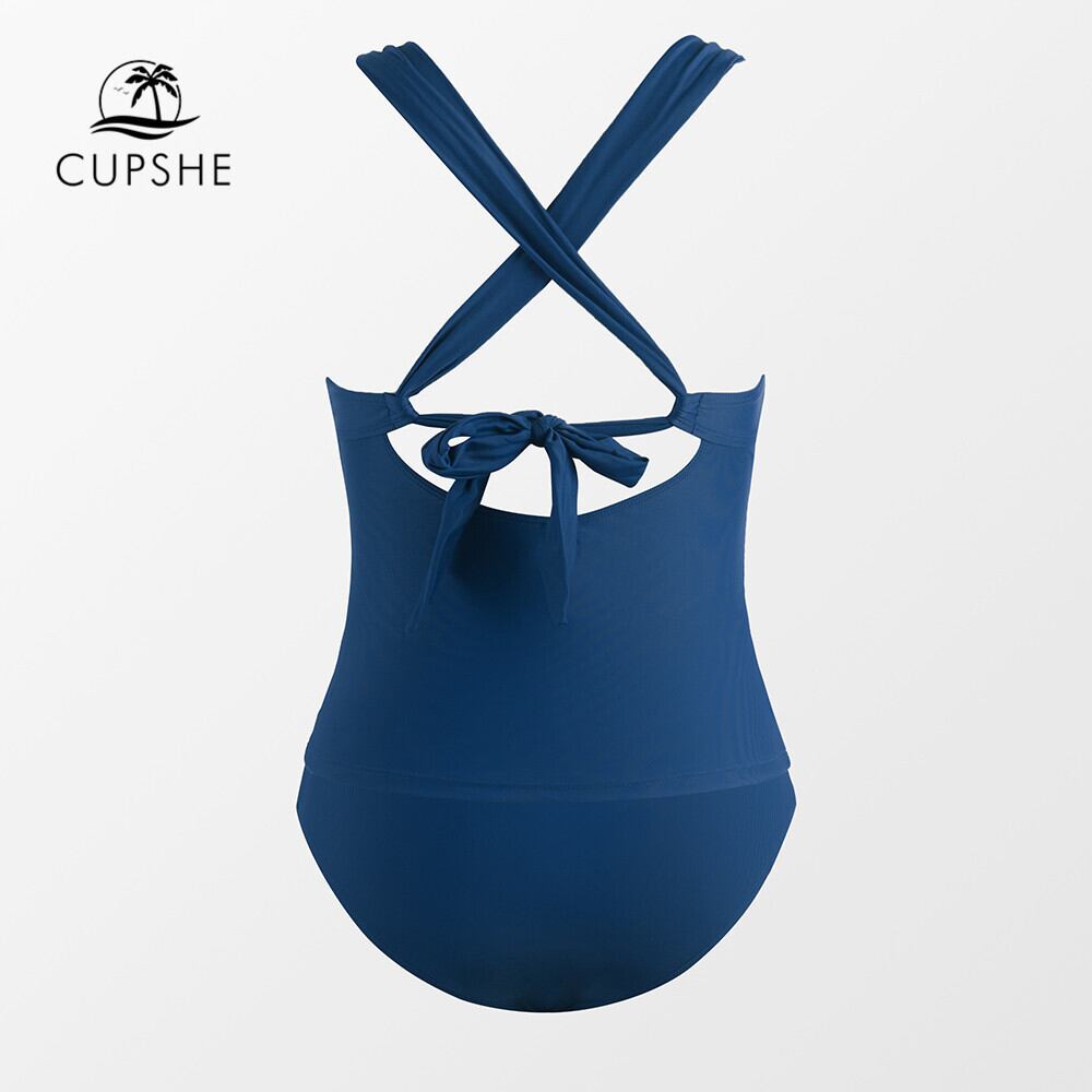 送料無料 CUPSHE タイバック O リングミッドウエストタンキニ水着女性海軍セクシーなビキニセット 2 枚水着 2023 夏水着 サマー 夏物 AE1212665525540362244