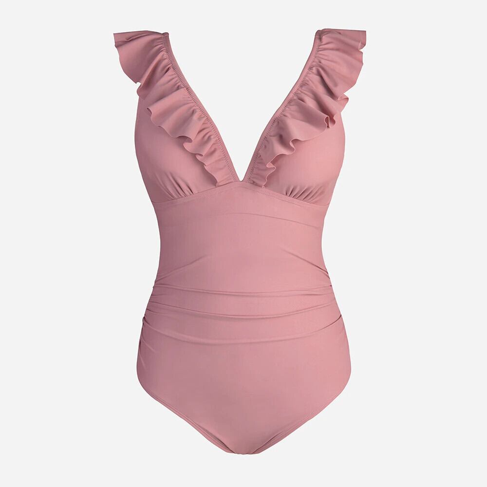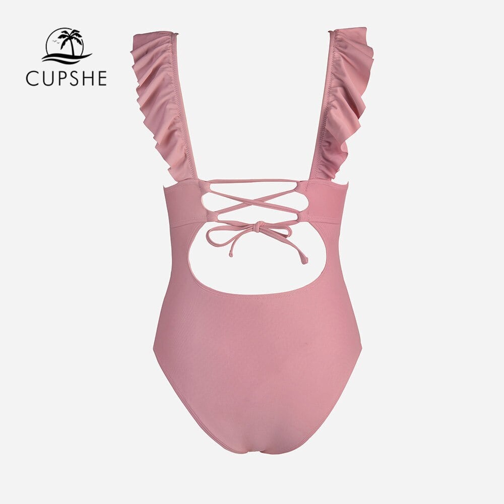 送料無料 CUPSHE ピンク V ネックフリルワンピース水着女性のセクシーなタイバックモノキニ水着 2023 水着ビーチウェア Vネック AE121266558750976289
