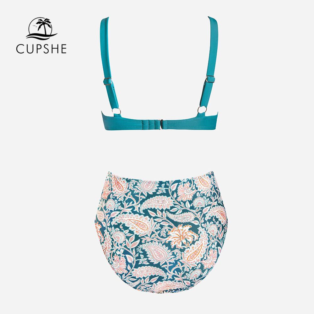 送料無料 CUPSHE スカラップウエストビキニセット水着女性花セクシーな V ネック 2 枚ビーチウェア 2023 水着水着 花柄 Vネック AE121266554739100818