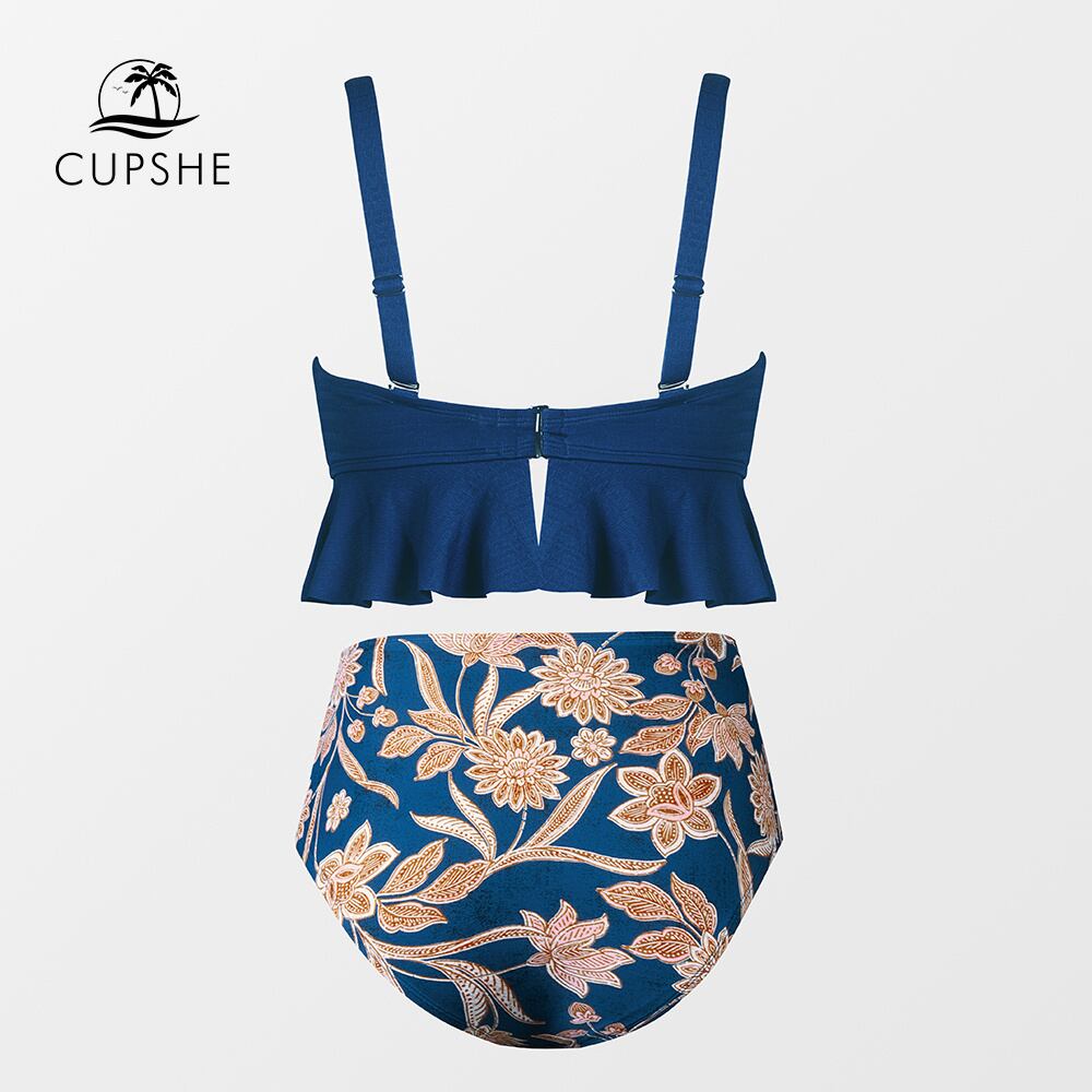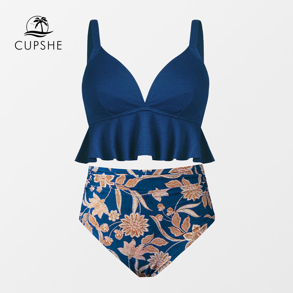 送料無料 CUPSHE プラスサイズ V ネックフリルウエストビキニセット女性大きいサイズ二枚水着 2023 水着水着 大きめサイズ Vネック AE1212665539885674405