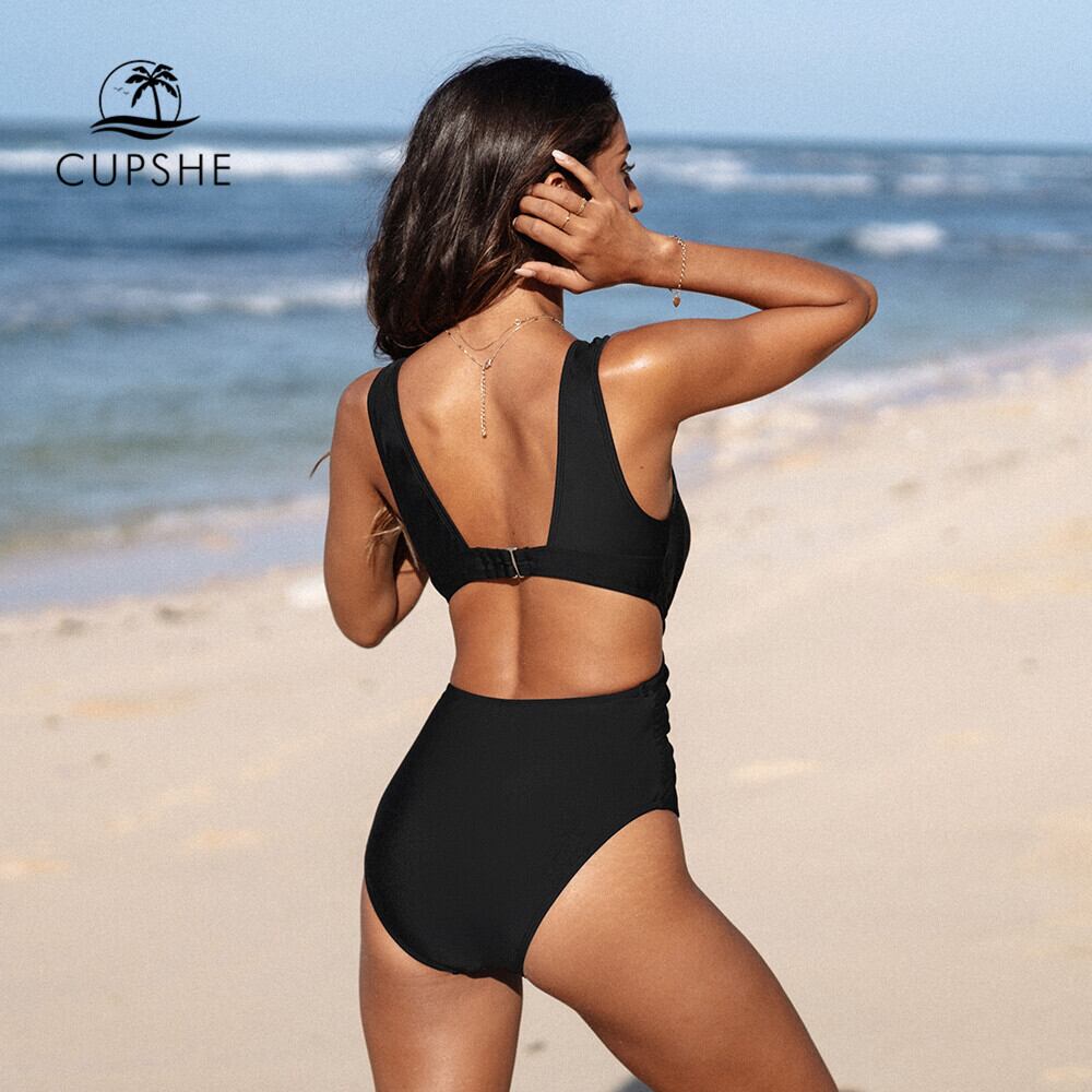 送料無料 CUPSHE プランジカットアウトワンピース水着女性黒のセクシーな背中の開いたモノキニ水着 2023 夏水着ビーチウェア ブラック サマー 夏物 AE1212665532434406828