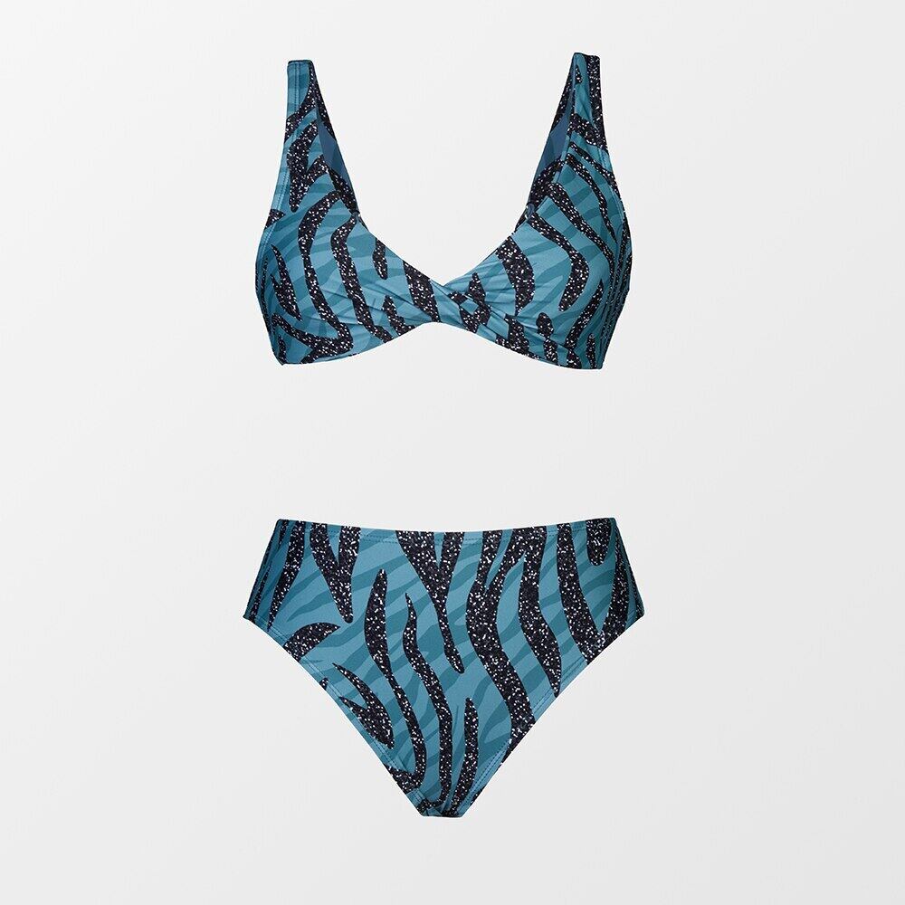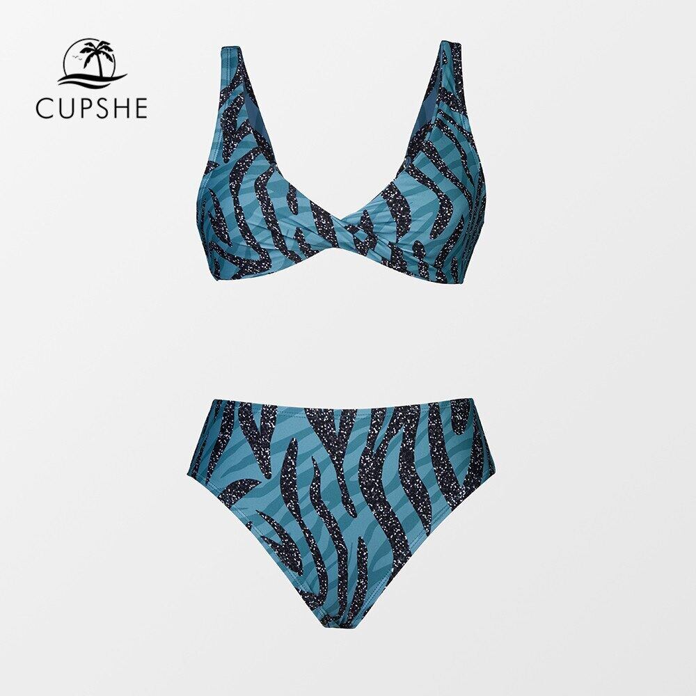 送料無料 CUPSHE シャーリングブルーゼブラプリントミッドウエストビキニセット水着女性のセクシーな二枚ビーチウェア 2023 水着水着 AE1212665526968034411