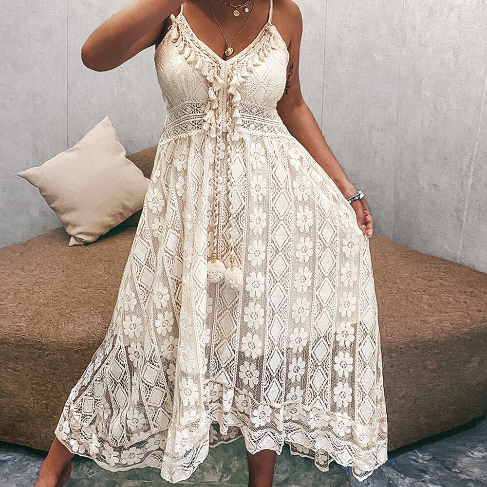 送料無料 CUPSHE V ネックレースアップカバーアップ女性ホワイトセクシーなレースルースホリデービーチスリップドレス 2023 夏マキシドレスビーチウェア サマー 夏物 Vネック AE1212665520076550501 | 女性の為の通販サイト-fashion navi
