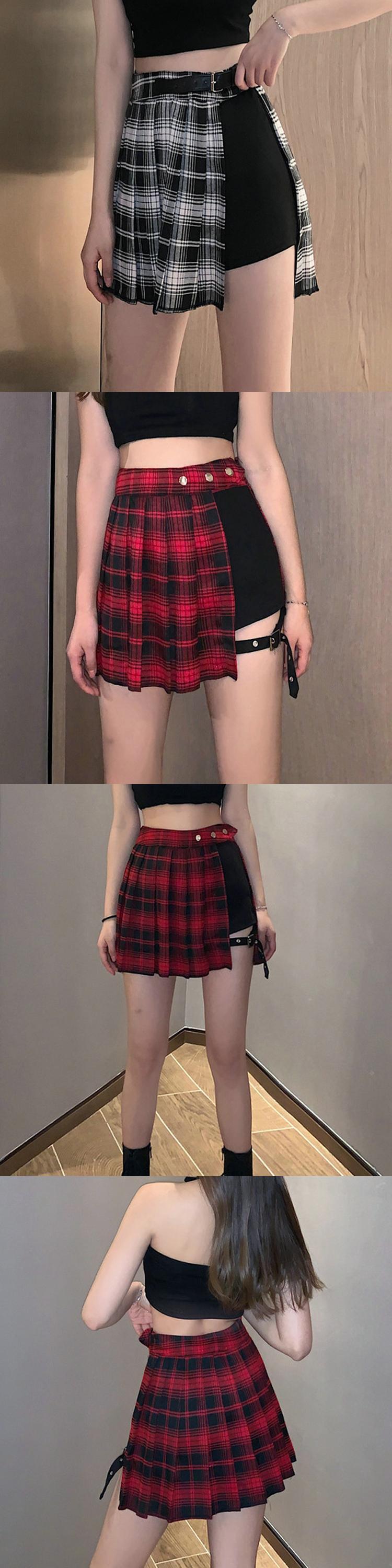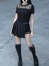 送料無料 ゴスダークセクシーなゴシック女性ミニスカートウエストプリーツパンクグランジ黒夏スカート 2021 シックな不規則なリベットストリート ブラック サマー 夏物 AE15558873659323440