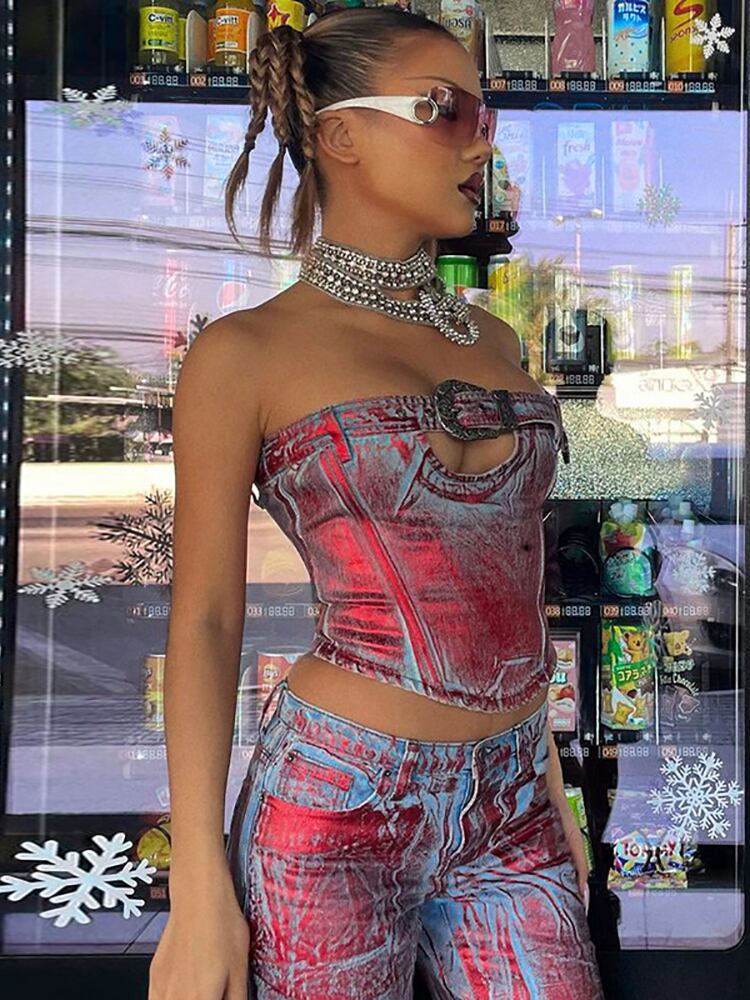 送料無料 ゴスダークサイバー Y2k パンク中空アウトセクシーなコルセットトップスヴィンテージゴシックグランジプリントチューブトップ Techwear ボディコンバックルベルトストラップレス ハーネス ビンテージ AE15558871122066155