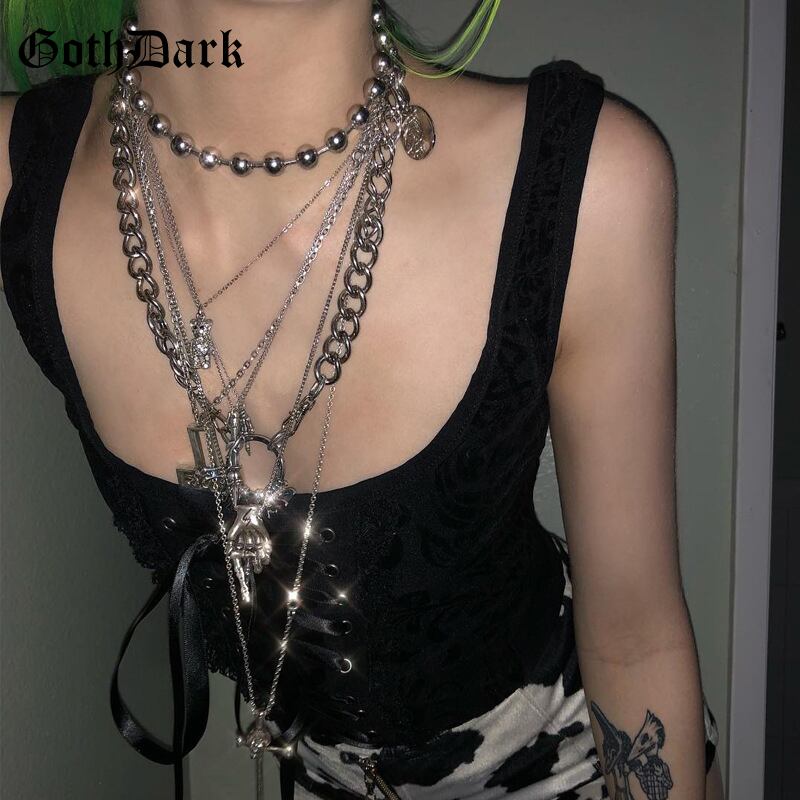 送料無料 ゴスダークグランジタンクトップゴシック透明中空アウト十字包帯トップ夏のセクシーなメッシュフリルフリルパンクトップス サマー 夏物 AE155588716770206927