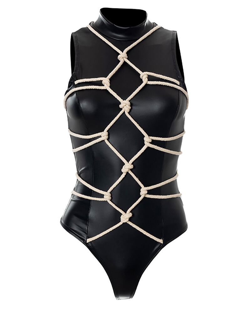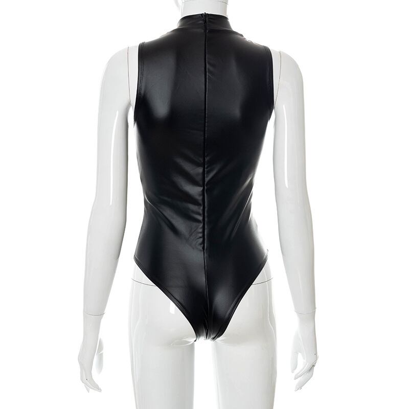 送料無料 ゴスダークフェイク Pu レザーグランジ女性ボディスーツゴシックボディコンパンク包帯黒ボディスーツサイバー Y2k セクシーなストリート服 ブラック ファー AE155588724667511238