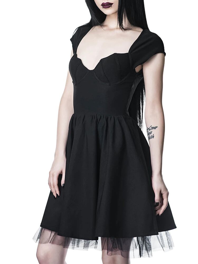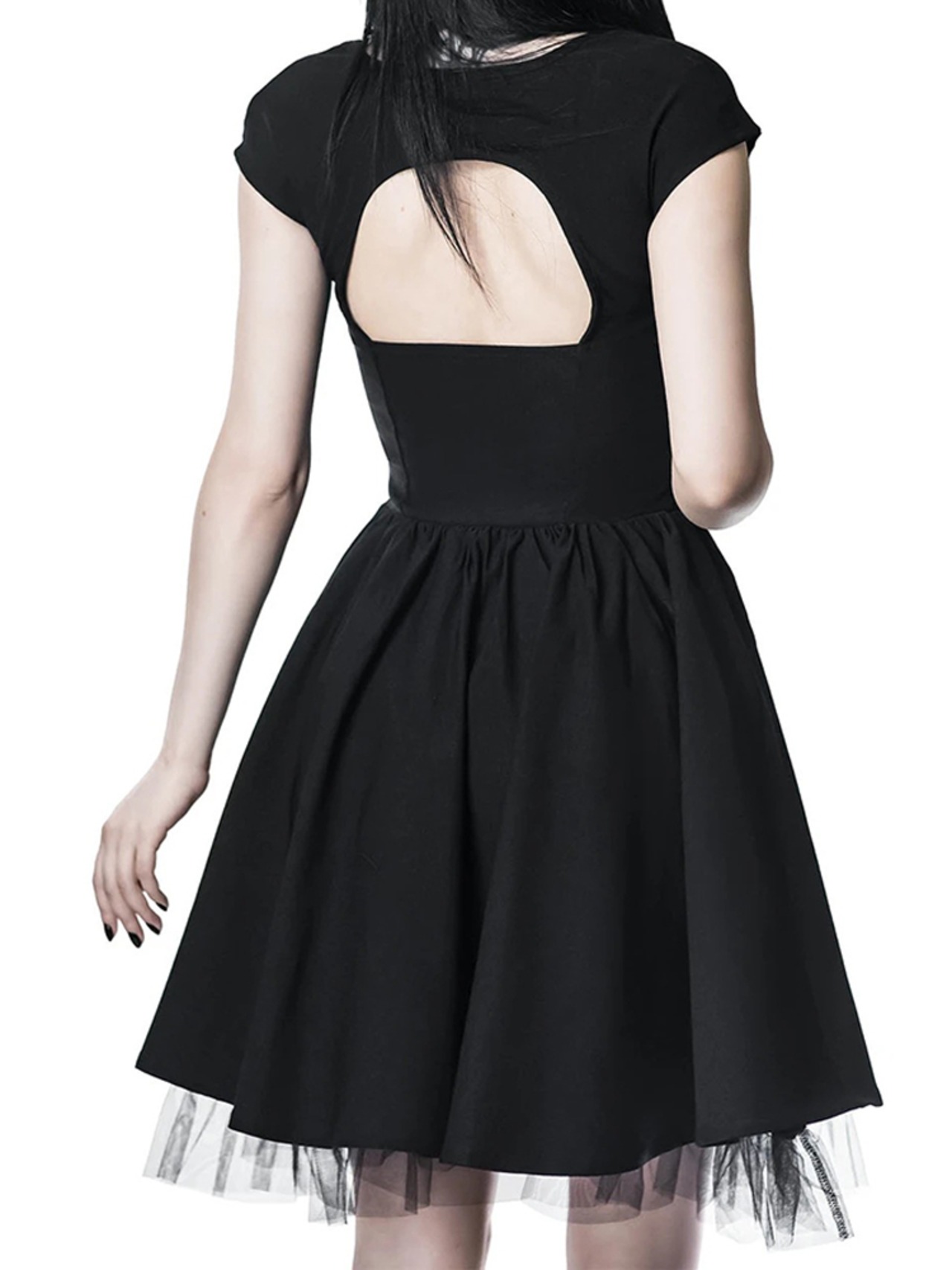 送料無料 ゴスダークバットシェイプモールゴシック中空アウトドレス女性グランジ黒美的パーティーウェアオルトエモパンク半袖サマードレス ショート ブラック ハーフスリーブ 夏物 AE155588755791885506