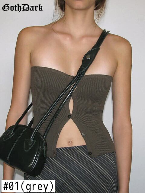送料無料 ゴスダーク 90 年代美的ストリート女性チューブトップレトロ Y2k グランジスキニーリブセクシーなクロップトップゴシックボタンアップベーシックストラップレス AE15558874717650566 | 女性の為の通販サイト-fashion navi