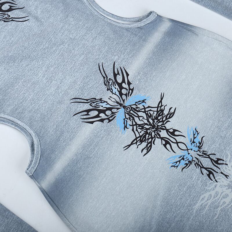 送料無料 ゴスダークサイバー Y2k パンクゴシック美的ミディドレス Techwear 分割セクシーな中空アウト女性ドレスパーティープリントストリート AE155588726422700286