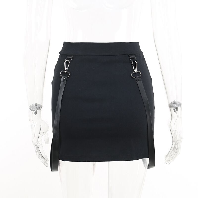 送料無料 ゴスダークモールゴシックジップスプリットセクシーな女性ミニスカートグランジストラップ黒ウエストペンシルスカートパンク E-Alt パーティークラブウェア ブラック AE155588791017334734