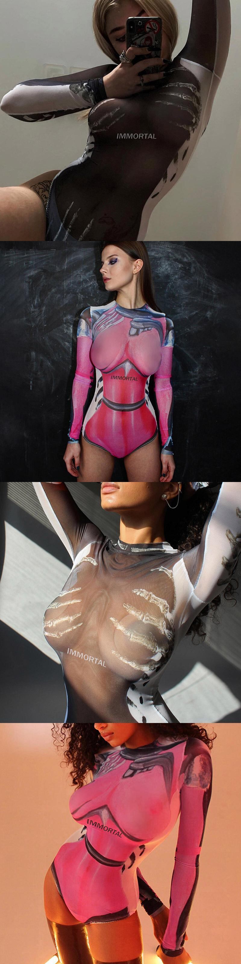 送料無料 ゴスダークメッシュサイバー Y2k パンクシースルーボディスーツ Techwear ゴシックスカルセクシーな Tシャツモト & バイカー長袖ボディスーツ ロング AE155588753390717105 | 女性の為の通販サイト-fashion navi