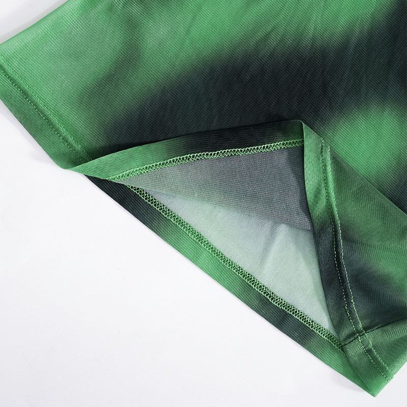 送料無料 ゴスダークサイバー Y2k パンクタイダイプリントセクシーな Tシャツ Techwear ストリートメッシュトップス女性ゴシックシースルー Tシャツ AE155588713359285561