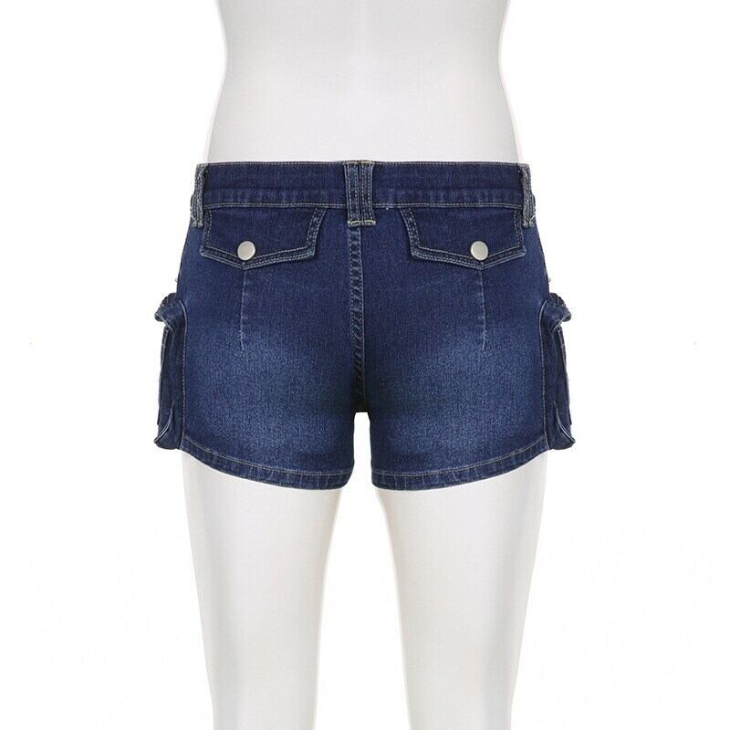 送料無料 ゴスダークビッグポケットゴシック女性デニムショーツ Y2k スキニー低層ブルーセクシーなミニショーツグランジパンク洗浄ストリート ブルマー AE155588777517130078