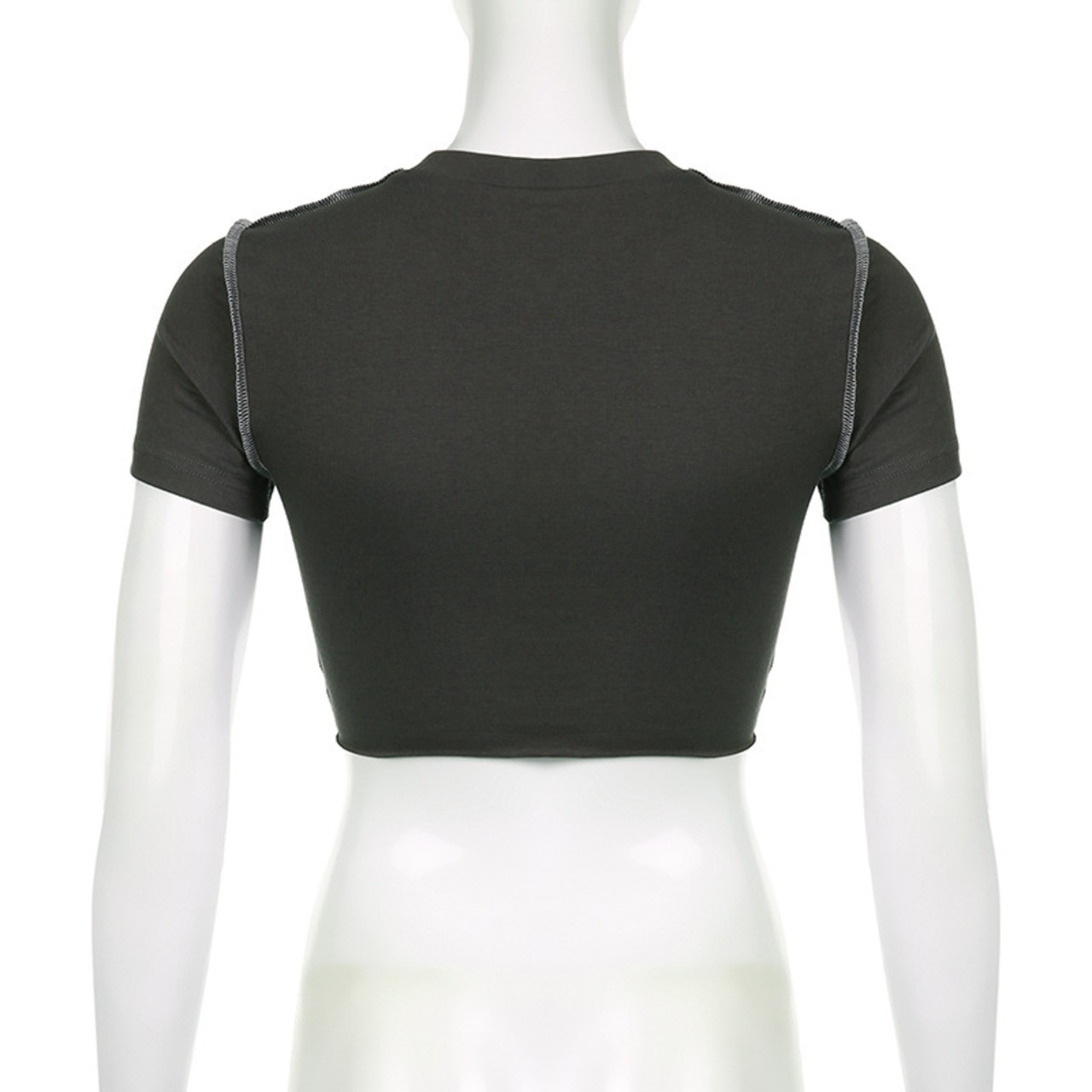 送料無料 ゴスダークグランジスタイル不規則な裾 Tシャツモト & バイカーセクシーなパッチワーククロップトップス Y2k ゴシックストリート女性ボディコン衣装 AE1555887905646116 | 女性の為の通販サイト-fashion navi