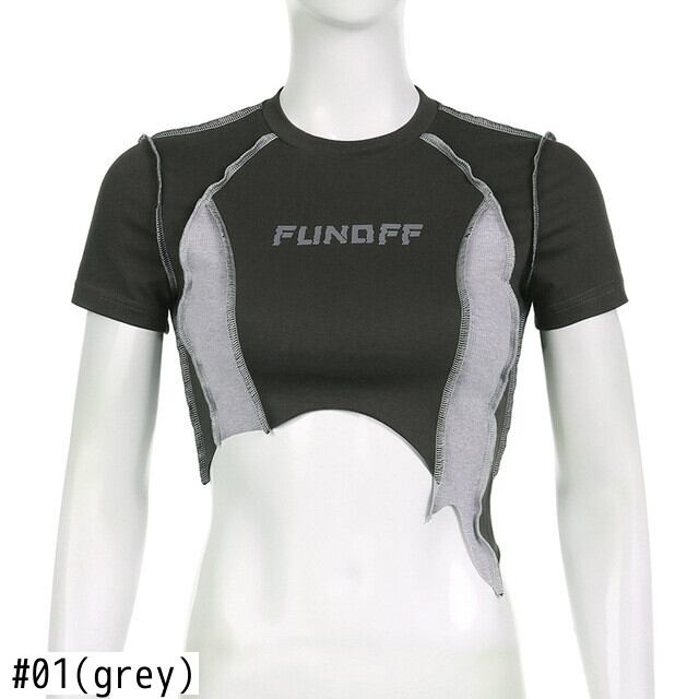送料無料 ゴスダークグランジスタイル不規則な裾 Tシャツモト & バイカーセクシーなパッチワーククロップトップス Y2k ゴシックストリート女性ボディコン衣装 AE1555887905646116