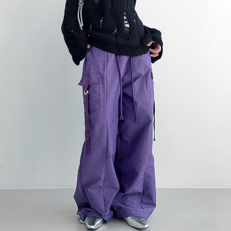 送料無料 ゴスダーク Y2k ストリートワイド脚だぶだぶのパンツ原宿ゴシック女性固体ズボングランジ巾着ポケットサイドボトムス かわいい ワイドレッグ ワイドパンツ ソリッドカラー AE155588762533074421