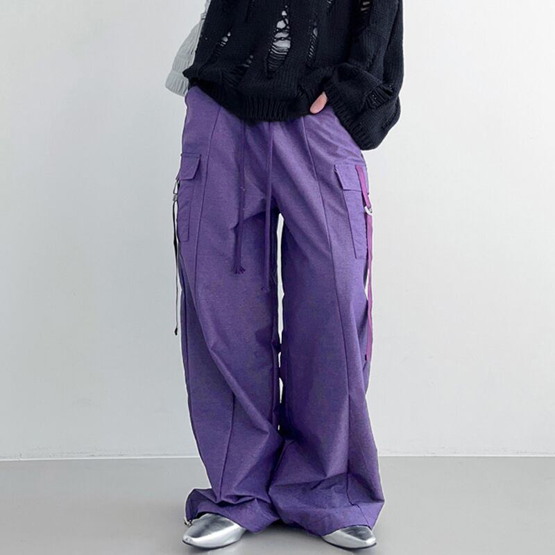 送料無料 ゴスダーク Y2k ストリートワイド脚だぶだぶのパンツ原宿ゴシック女性固体ズボングランジ巾着ポケットサイドボトムス かわいい ワイドレッグ ワイドパンツ ソリッドカラー AE155588762533074421 | 女性の為の通販サイト-fashion navi