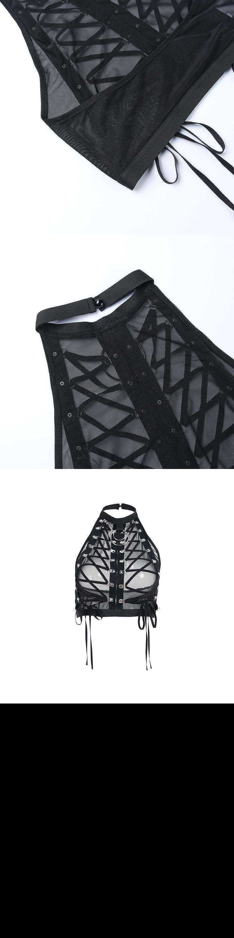 送料無料 ゴスダークメッシュシースルーモールゴシック女性クロップトップスグランジ美的黒夏タンクトップパンクスキニーナイトセクシーな Alt 服 ブラック サマー 夏物 AE155588710980197042