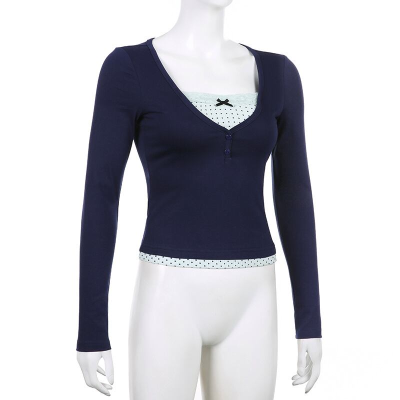 送料無料 ゴスダークレトロ Y2k グランジストリートボディコンブラウスゴシックヴィンテージパッチワーク女性 Tシャツかわいい長袖レーストップス ロング ビンテージ AE155588743099315708