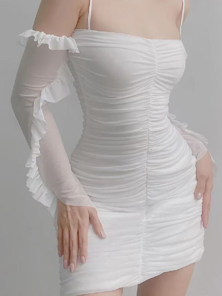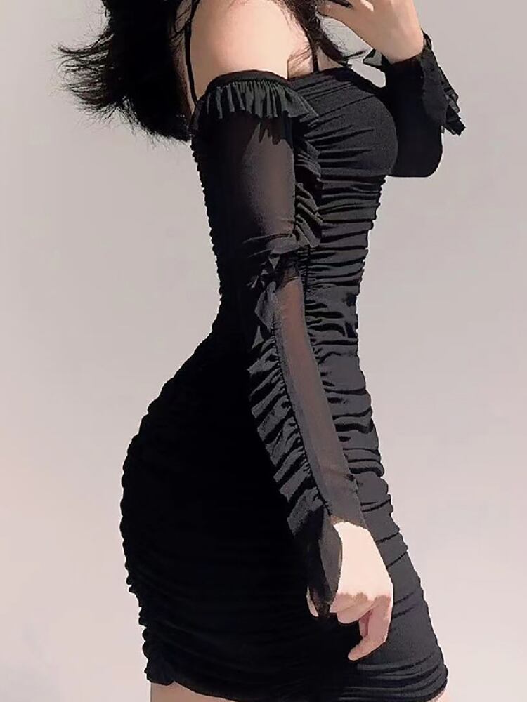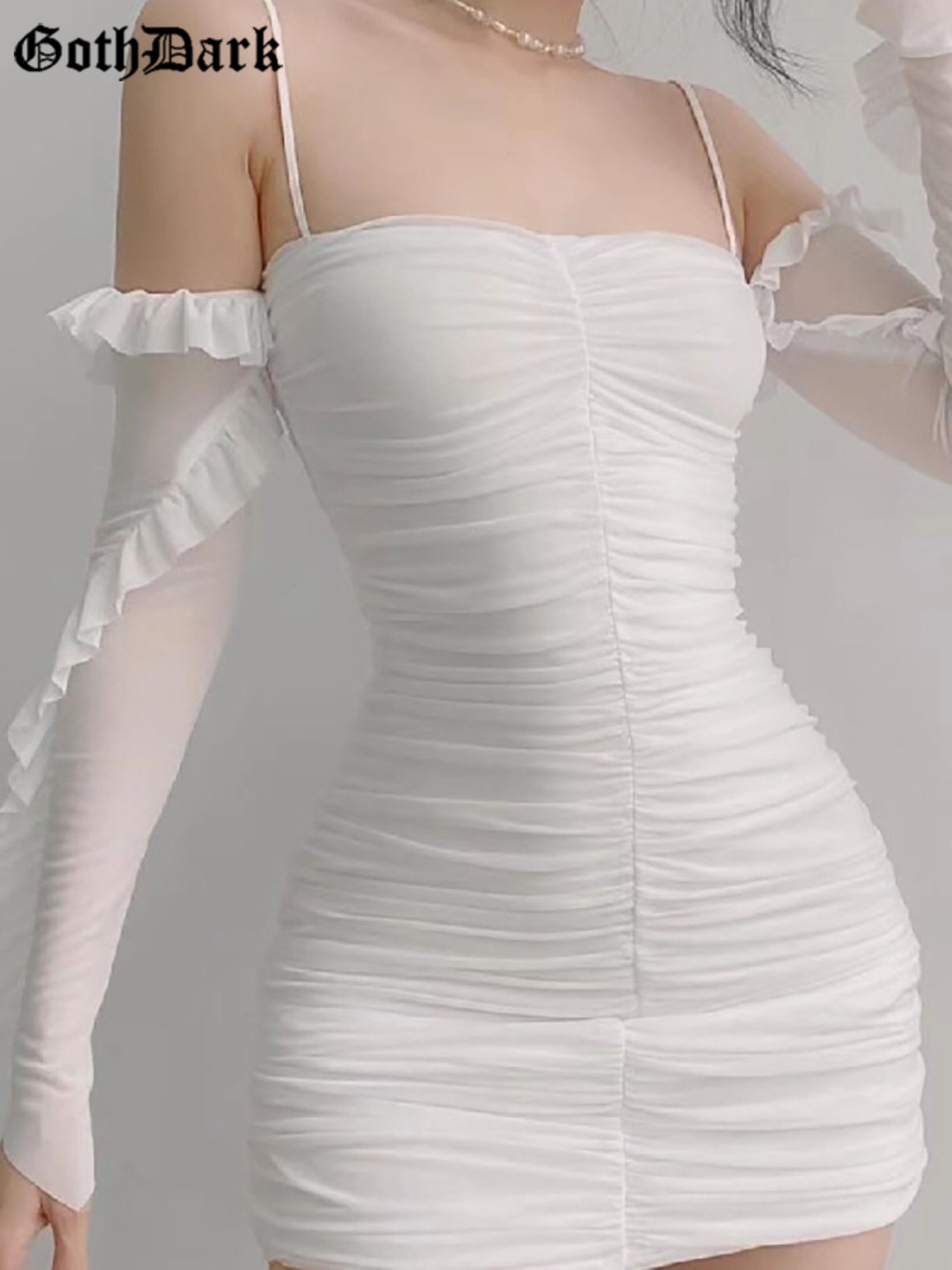 送料無料 ゴスダークフェアリーコア美的メッシュシャーリングドレス Y2k セクシーなオフショルダースキニー女性ミニドレスゴシックフリル背中の開いたパーティーウェア AE155588787352611330