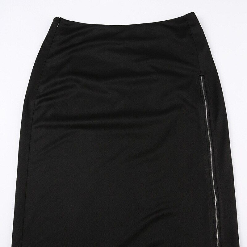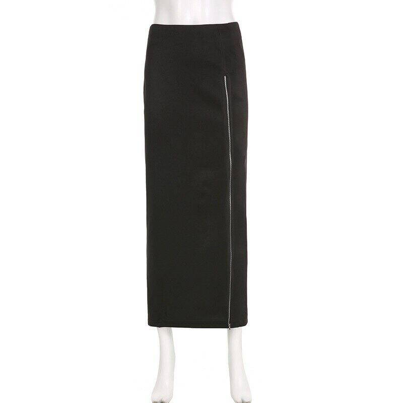 送料無料 ゴスダーク Techwear ジップサイドスプリットセクシーなミディスカートモールゴシックウエスト女性ロングスカートグランジスタイル黒ボトムス 2023 ブラック AE155588798053466004