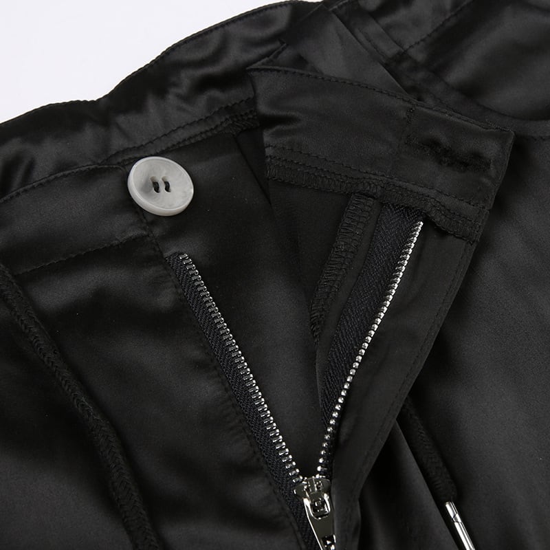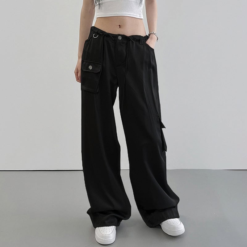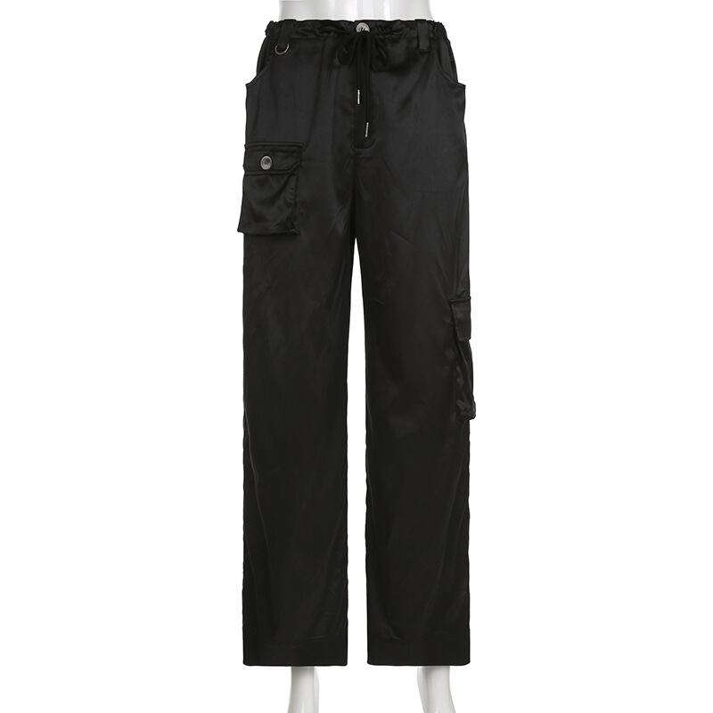 送料無料 ゴスダークサテンサイバーゴシック Y2k ワイドレッグパンツパンク Techwear だぶだぶカーゴパンツ原宿ローウエストストリート かわいい ワイドパンツ AE155588753191019648