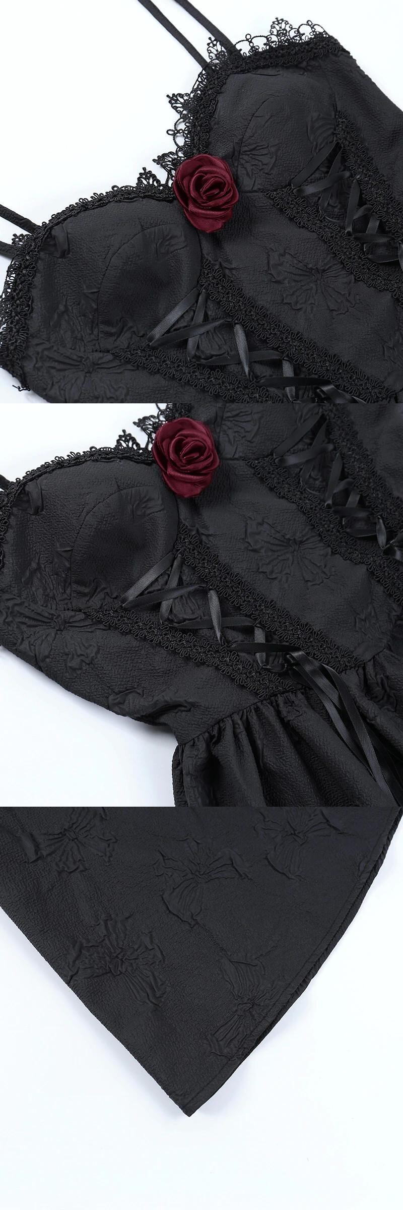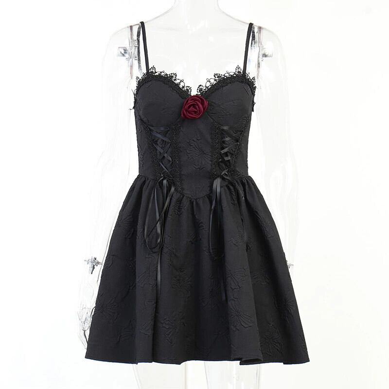 送料無料 ゴスダークタイアップモールゴシック女性ドレスグランジ美的ジャカード A ラインドレスエモレーストリムブラックパーティー Alt 服 Aライン AE15558872593705337