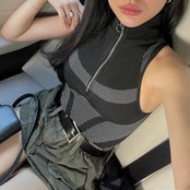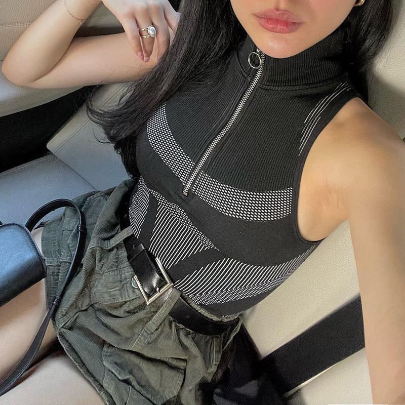 送料無料 ゴスダークモト & バイカー Techwear クロップトップスサイバー Y2k ゴシックストリートカーゴタンクトップパンクジップアップ女性タートルネックベスト AE155588789964151473