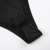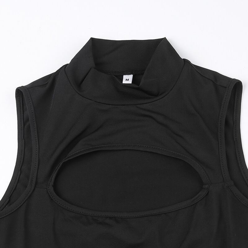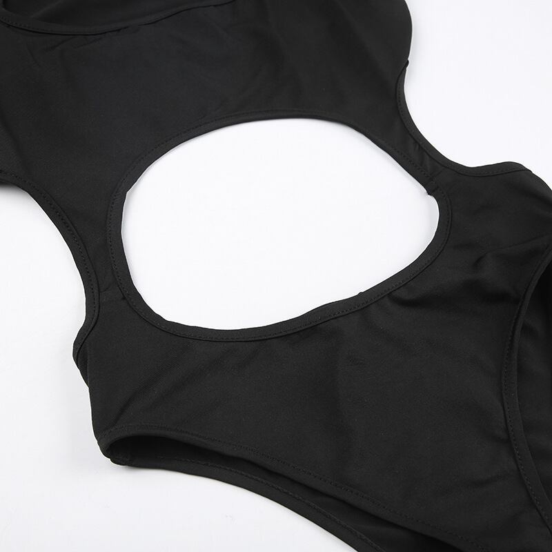 送料無料 ゴスダークカットアウトセクシーな Techwear 黒ボディスーツ Y2k パンクゴシック固体スキニー女性トップスグランジノースリーブモックネック Alt ボディスーツ ブラック ソリッドカラー AE155588777405557536