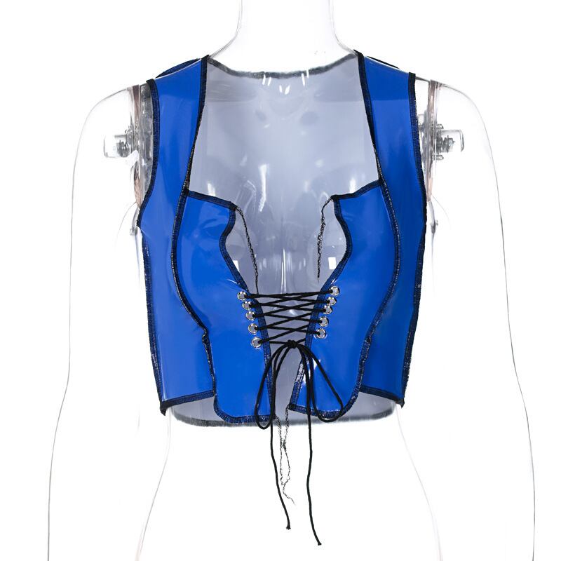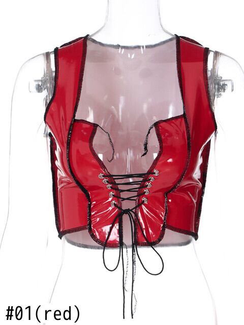 送料無料 ゴスダークフェイクレザーゴシックセクシーなコルセットタンクトップグランジパンクPU女性クロップトップス包帯パッチワークビスチェボディコンストリート ファー AE155588759745042060