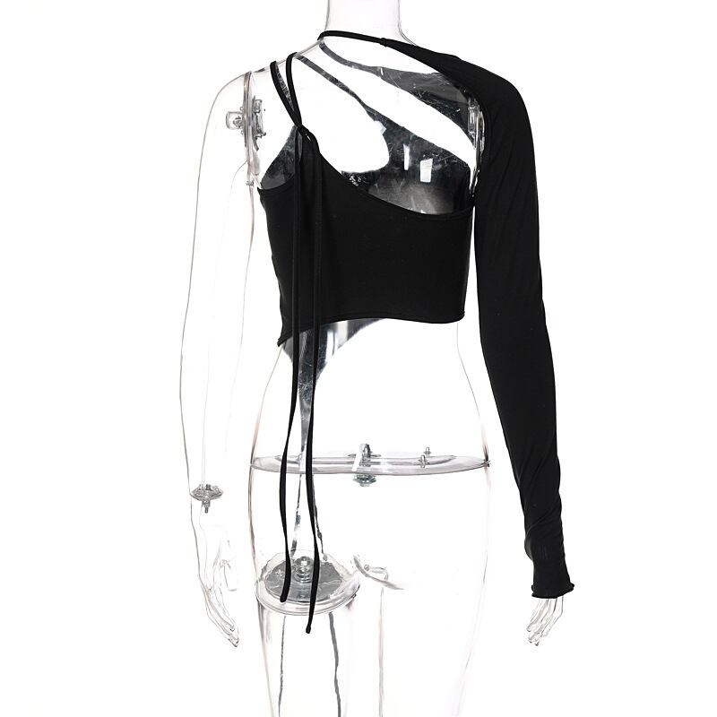 送料無料 ゴスダーク Y2k グランジ黒パッチワーク女性キャミソールパンクワンショルダースキニー Tシャツゴシック包帯ヒップホップ不規則なセクシーな 2 個セット ブラック AE155588729195635059 | 女性の為の通販サイト-fashion navi